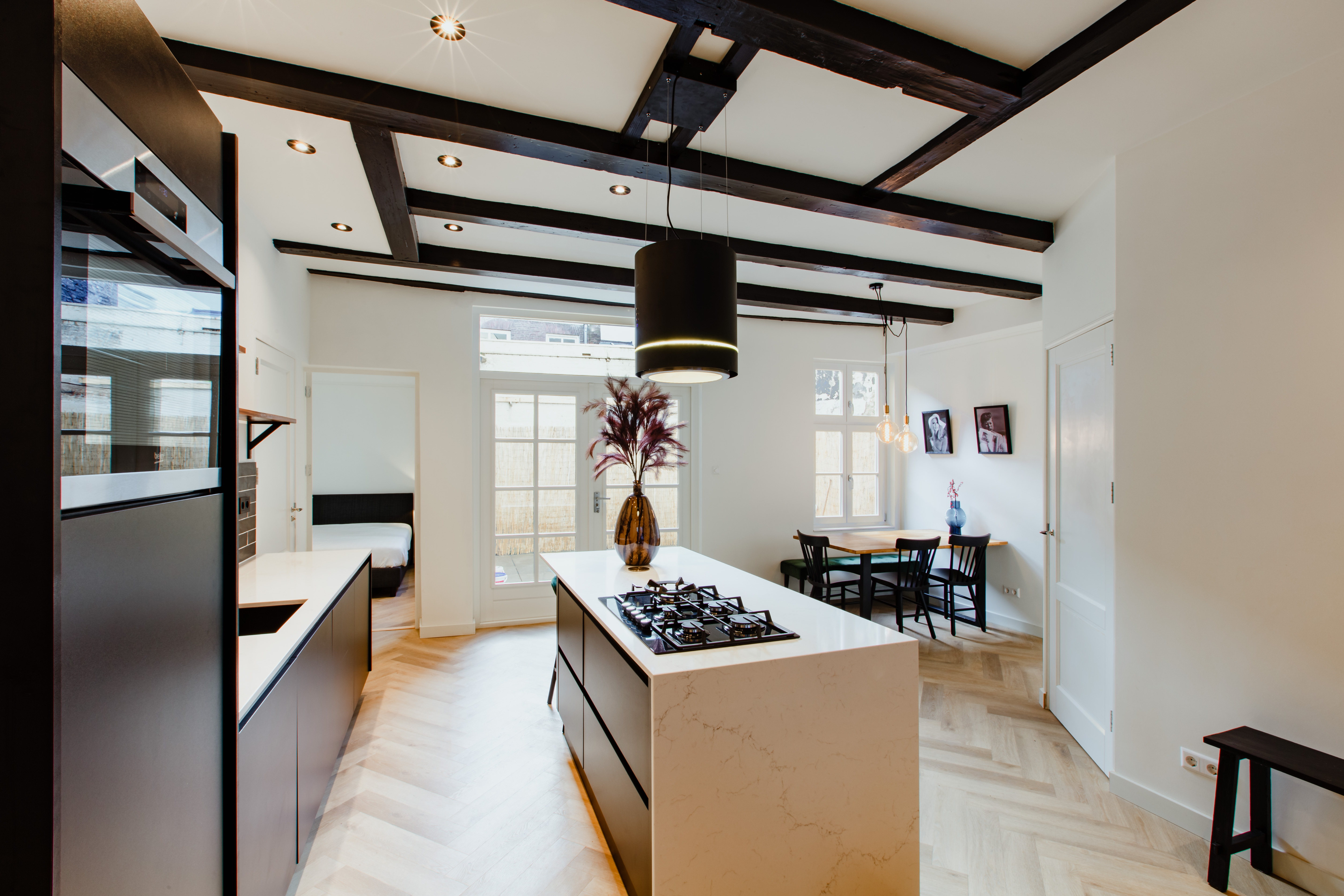 De keuken is volledig uitgerust en van alle gemakken voorzien. Door het brede kookeiland heb je alle ruimte en door het verlengstuk hiervan kan je gezellig aan de bar zitten met 2 personen In de slaapkamer staat een comfortabel bed van 1,60 meter. Het linnengoed is van Egyptisch katoen. Deze zachte stof zorgt voor een koninklijke nachtrust De badkamer is voorzien van 2 wasbakken en 2 spiegels. Ook heeft de douche een regendouche en een normale douchekop. De patio biedt een oase van rust en een zonnetje tussen 12:00 en 16:00 ongeveer. Uiteraard kan je zitten aan een tafeltje en stoelen. En dit midden in de stad! Gelegen in het hart van de stad, ben je omringd door de beste restaurants, winkels en culturele hotspots, terwijl je tegelijkertijd geniet van de rust en luxe die deze woning te bieden heeft.